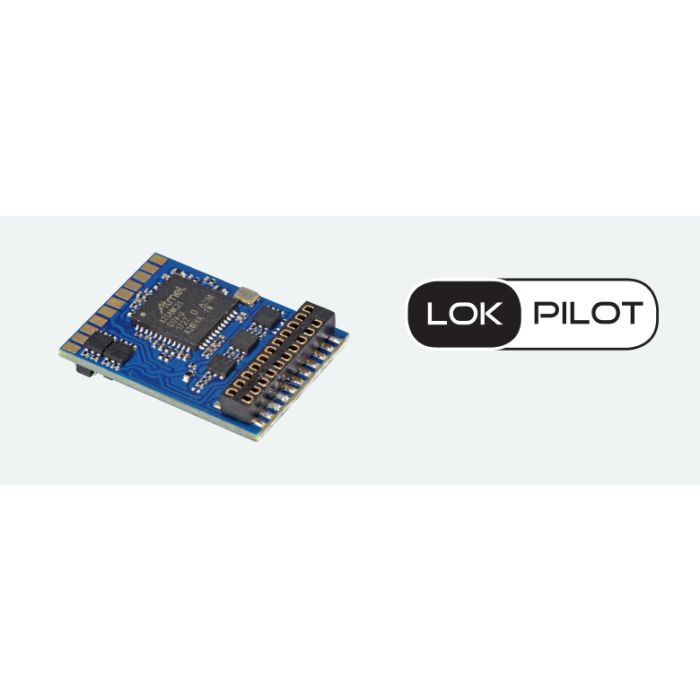 The LokPilot 5 DCC is a dedicated DCC decoder. 14 to 128 speed steps are standard, as well as 2- and 4-digit addresses. Up to 32 functions can be activated. Thanks to RailComPlus®, the decoder registers automatically with a compatible digital command station.
