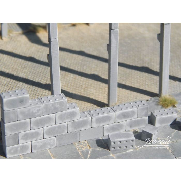 The Juweela concrete blocks with studs (8er/4er) are highly realistic miniature concrete blocks, modeled after the well-known stackable construction blocks used in building projects. With their characteristic stud structure, they can be stacked just like the real ones, creating stable constructions. Ideal for model making, dioramas, and industrial scenes that demand realism and detail.