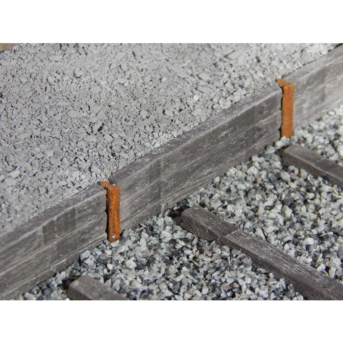 Usually, three railway sleepers are placed on top of each other. A piece of rail profile supports the sleepers vertically, set into the ground. The underside of the track faces the rail side. The platform is then filled up and raised.