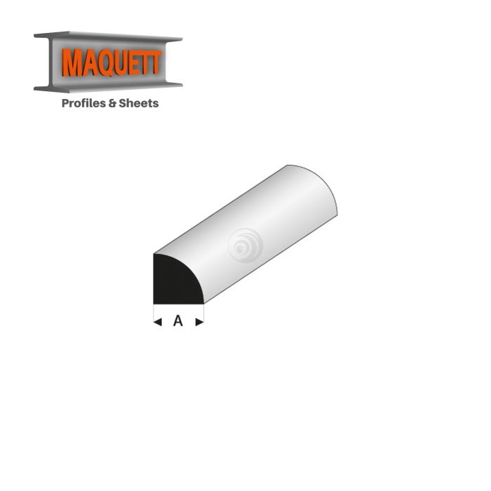 Maquett Styrene Profiles - Quarter Round Rod - Length: 330mm - White - 2,5mm/0.10"