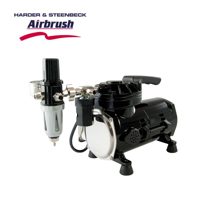 Oil-free compressors are completely maintenance free. Based on their design a wide range of models has been developed with various sizes, features and performance levels. From pocket-size mini compressors to powerful professional devices with air tanks, these systems satisfy all possible requirements. Especially beginners and hobbyists benefit from the excellent price/performance ratio. Oil-free compressors are noted lightweights, which makes them ideal for mobile applications, e.g. in the field of nail design, makeup, body art and tanning. Most of these devices are equipped with a pressure reducer and a pressure gauge and can be connected to any airbrush equipment via standard connectors. Of course all of these compressors carry all mandatory seals of approval and certifications.